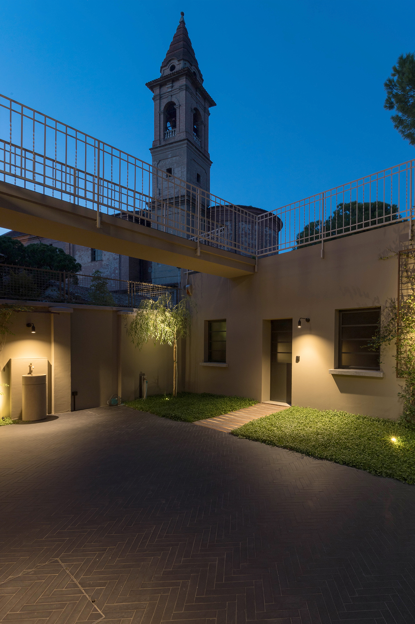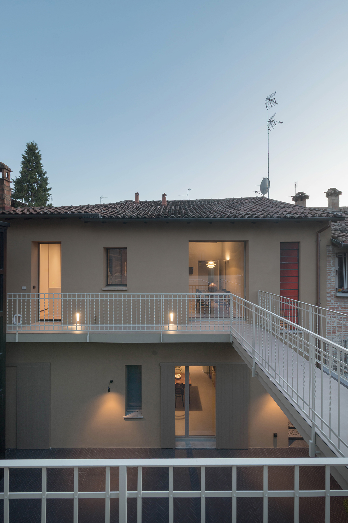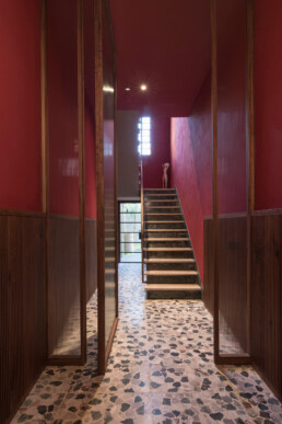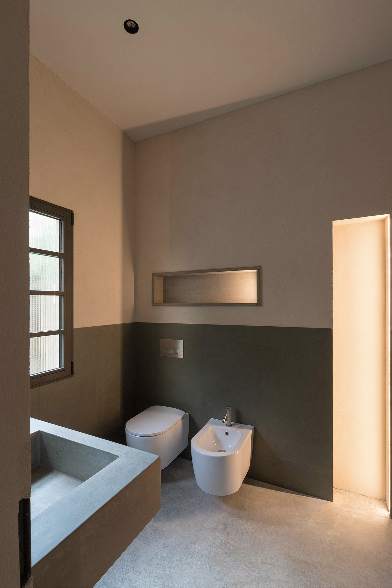 La planimetria è stata mantenuta quasi intatta, con l’unica eccezione della modifica di alcuni tamponamenti per integrare nuovi bagni al piano terra e nell’appartamento principale (Primo Piano), destinato alla committenza e oggetto di una personalizzazione di elevata eleganza.