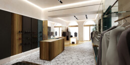 Progettazione, architettura e arredo specifico per la vendita di abbigliamento.