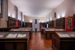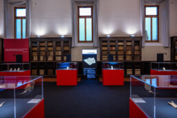 Il percorso era arricchito da una selezione di manoscritti e libri a stampa della Malatestiana, che illustravano le tappe salienti della scrittura occidentale tra l’Antichità e il primo Ottocento, includendo anche esempi di sistemi grafici di culture “altre” (Mesoamerica, Nordafrica, Medio ed Estremo Oriente).
