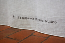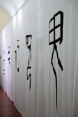 Le iscrizioni in mostra, riproduzioni fedeli di reperti archeologici del Museo di Anyang, erano stampate digitalmente su “garza”. Queste riproduzioni evidenziavano la maturità della scrittura cinese sin dalle origini, la sua influenza sull’Asia Orientale e la sua evoluzione coerente fino alla Cina contemporanea.