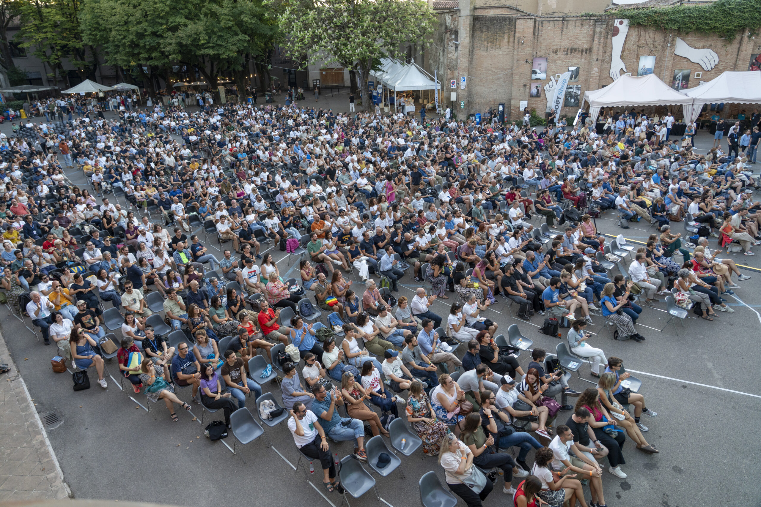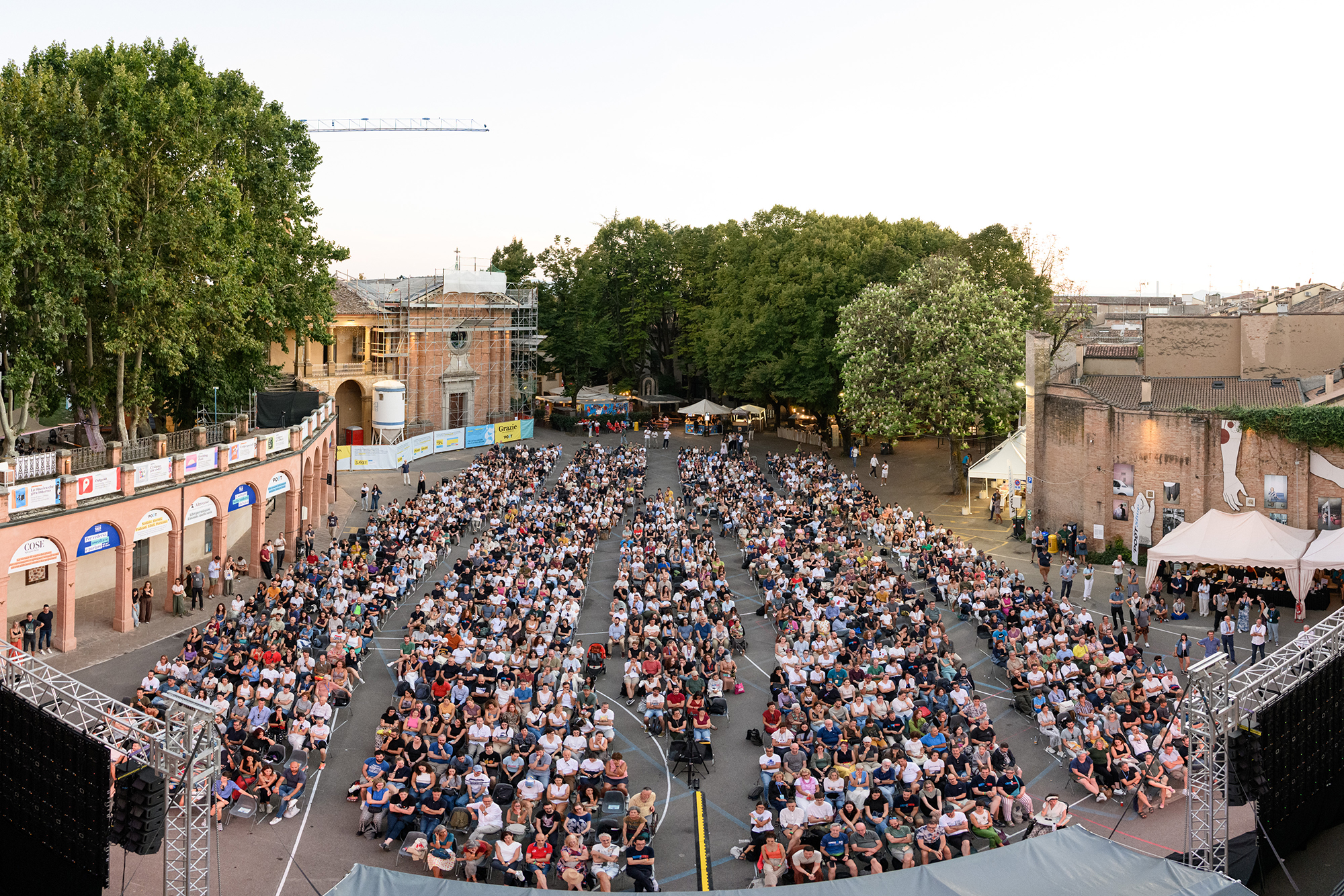 Il nostro studio si occupa del project management e del coordinamento generale di tutti gli allestimenti dell’evento. Questo ruolo strategico comprende la definizione della dislocazione ottimale e funzionale delle aree di attività e degli elementi grafici, il layout e il tracciamento della platea (oltre 1600 posti) e la supervisione di tutte le maestranze coinvolte nella realizzazione. Manteniamo questo incarico di responsabilità ininterrottamente dal 2021.