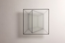 L’impianto edilizio preesistente è stato completamente integrato con nuove soluzioni di arredo espositivo e una rinnovata visione estetica. L’intervento di re-fresh delle superfici ha incluso l’applicazione di un intonachino a calce dalle tonalità calde, caratterizzato da una finitura “schiacciata e strappata” che dona morbidezza alle murature perimetrali. Il focus è stato posto sulla grande parete centrale, avvolta da un rivestimento materico unico: garze di tela grezza imbevute in collanti e pigmenti terrosi e bituminosi, creando un effetto finale di forte impatto visivo e scultoreo.