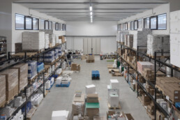 L’intervento si è concentrato sul recupero dell’edificio, partendo da un profondo risanamento (eliminazione di infiltrazioni e sostituzione di vetri) dato il suo stato di abbandono. L’obiettivo era creare un ampio e funzionale magazzino/deposito, affiancato da una zona uffici ampliata (tramite estensione del soppalco preesistente) e un nuovo, accattivante spazio commerciale per la Farmacia veterinaria.