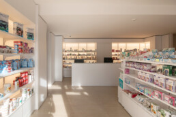 Infine, anche gli esterni sono stati riorganizzati per migliorare l’accesso e l’immagine complessiva. In definitiva, il progetto ha saputo coniugare con successo le rigorose esigenze di stoccaggio farmaceutico con la creazione di un ambiente di lavoro e un punto vendita funzionale e professionale.