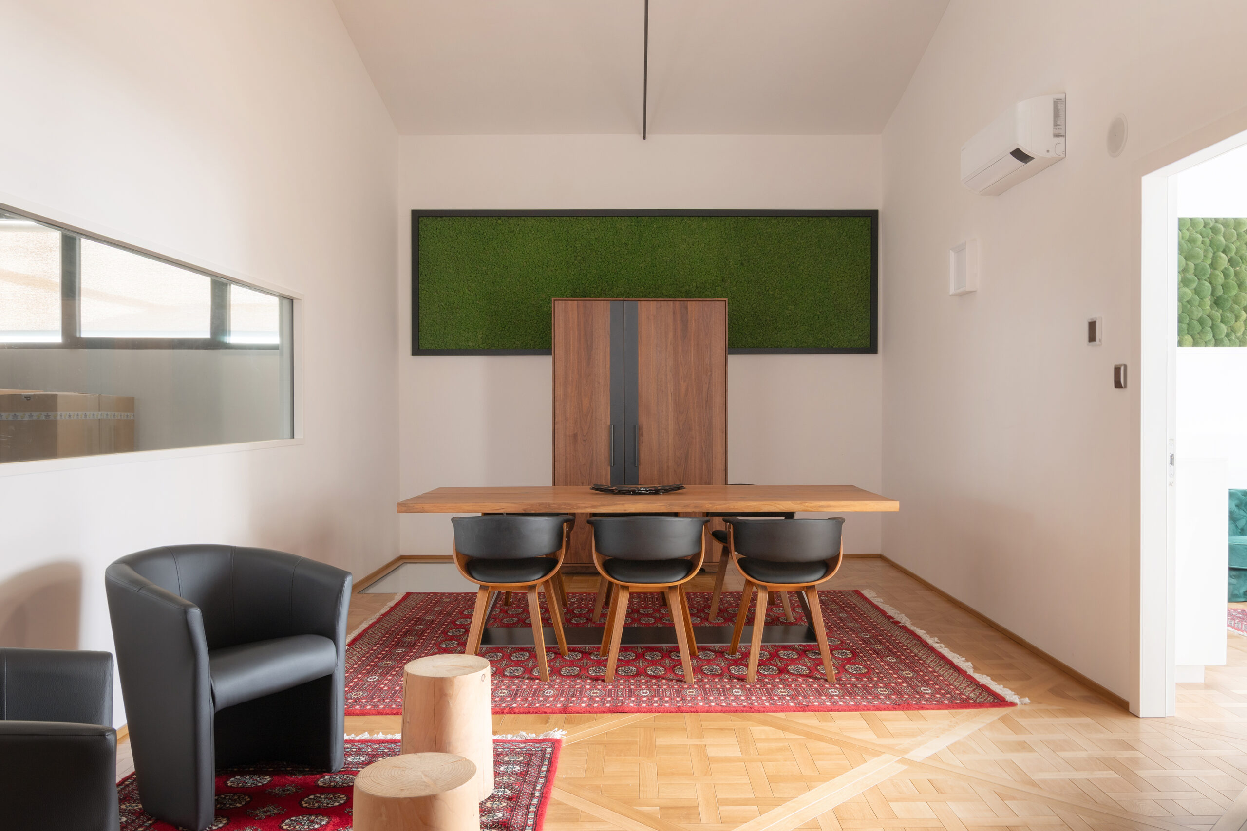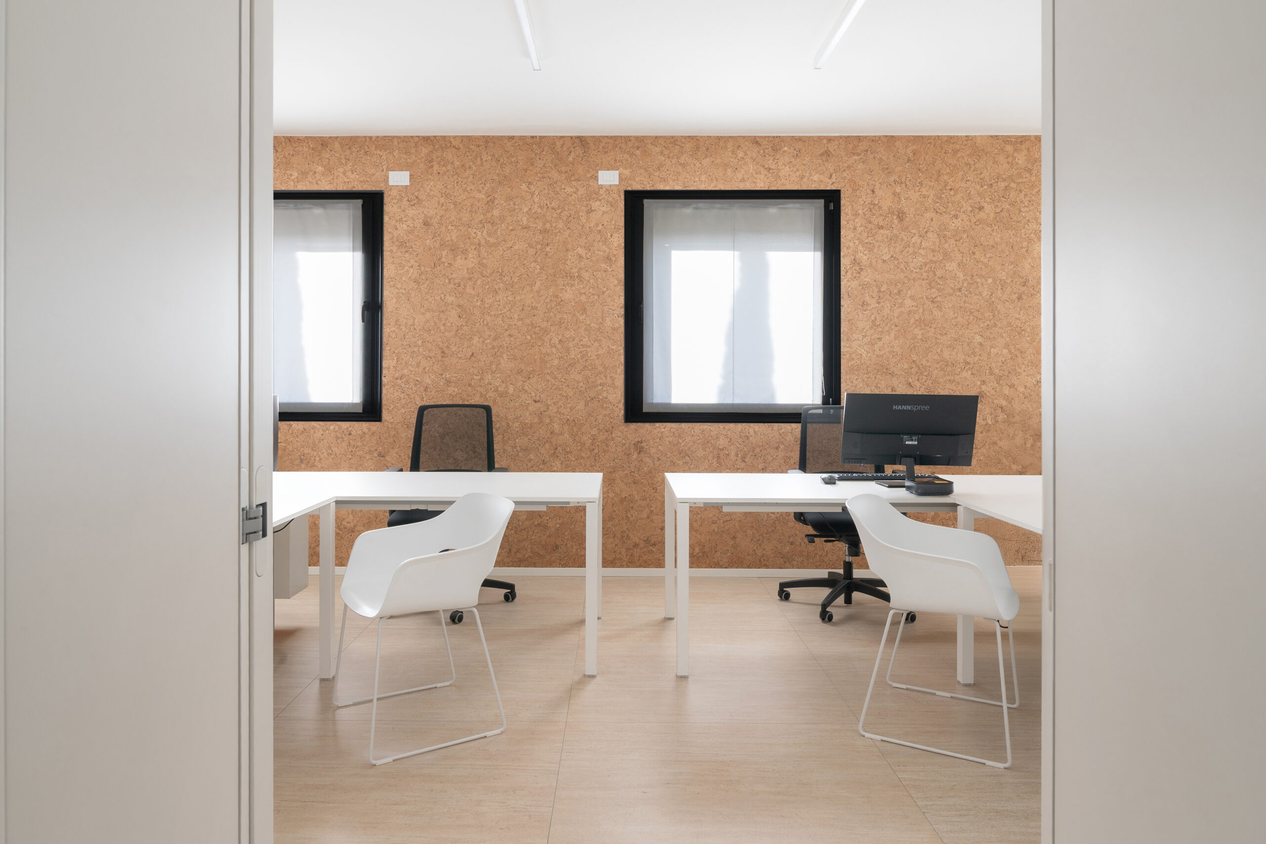 Gli interni sono stati ridefiniti con nuovi elementi per l’isolamento termico e acustico e la sicurezza antincendio (pareti REI60). Le finiture privilegiano la funzionalità e la pulizia (cemento industriale e vernici a smalto), mentre uffici e area vendita offrono un design moderno e accogliente, con il negozio caratterizzato da un ambiente luminoso e professionale.